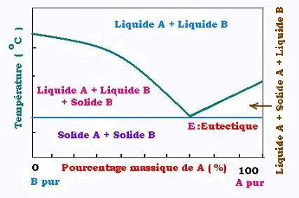 Le point E est appelé l'eutectique. À cette proportion précise, le diagramme de solidification du