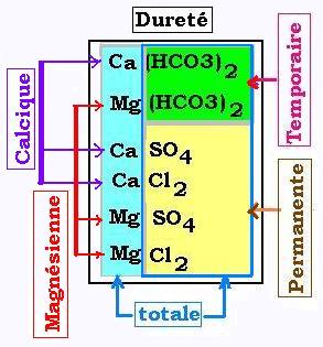 Dureté totale = dureté calcique (due aux ions Ca+2) + dureté magnésienne (due aux ions Mg2+)