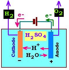 nécessaire. Sur la cathode les ions H+ de l'acide présent dans l'eau réagissent avec ces