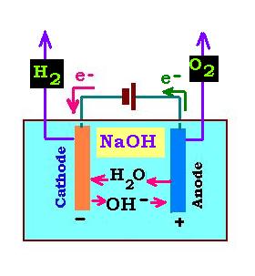 1.2. Électrolyse de l'eau en solution alcaline: