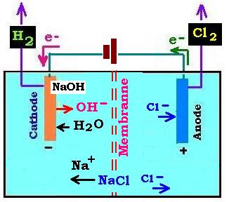 2NaCl + 2H2O → 2NaOH + Cl2 + H2 (1.2.4)