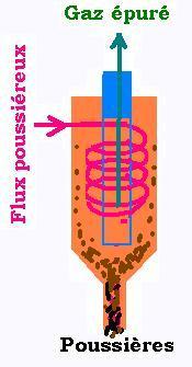 à filtrer sont solides. Si les impuretés sont des goutelettes liquides, on parle de dévésiculage. Une poussière est un solide de diamètre compris entre 0.05 et 100 µm. En decà de cette étendue, la poussière est un aérosol; au delà, c'est une particule solide. ces poussières peuvent être d'origine mécanique comme les produits broyés ou pulvérulés ou physicochimiques du à des combustion. Pour dépoussiérer, on utilise des chambres de sédimentations, des cyclones, des filtres à manches oudes électrofiltres; pour le dévésiculage, on utilise des laveurs humides à pulvérisation ou en venturi.