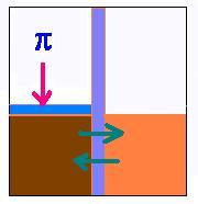 Dans un récipient contenant deux volumes égaux de solutions, une plus concentrée et l'autre moins concentrée, séparés par une membrane semi perméable, le solvant passe de droite à gauche, de la solution diluée vers la solution concentrée; ainsi son volume augmente jusqu'a un certain équilibre, c'est l'osmose. On peut contrer cet effet par une pression dite pression osmotique π pour ramener le système à une position d'équilibre instable, c'est l'osmose inverse. La valeur de la pression osmotique est donnée par la loi de Van't Hoff, similaire à celle des