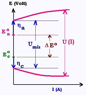 Si l'on tient compte de la résistance R de l'électrolyte, la tension d'opération s'ecrit: