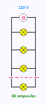 chacune, branchées en dérivation, alimenté sous une tension de 120 V.
