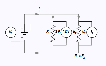 Loi d’Ohm pour R1: R1 = U1/I1 = 12 V/2 A = 6 Ω