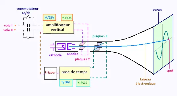 Le faisceau d'électrons qui traverse ces plaques subit l'influence du champs