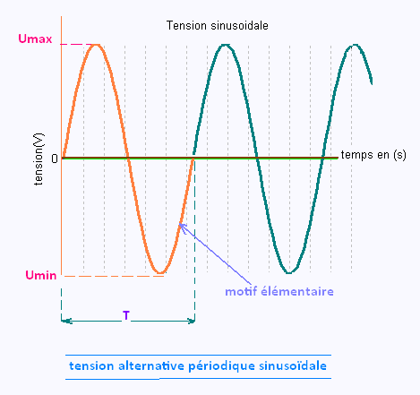 tension alternative périodique sinusoïdale.