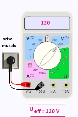 On mesure une tension efficace avec un voltmètre. On peut