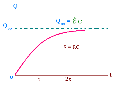 Q = ℰC[1 - exp{- t/RC}]