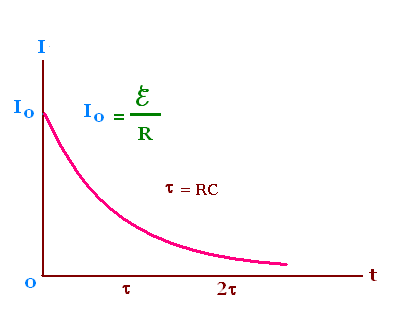 I = - dQ/dt = (Qo/RC) exp {- t/RC}