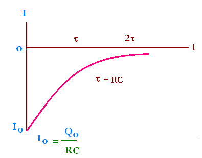 Io = Qo/RC = Vo/R, τ = RC
