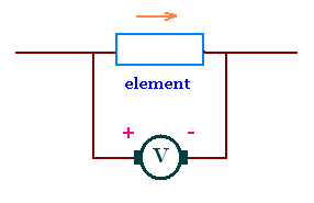 element. A voltmeter measures the potential difference across itself. The potential difference across the element and across in the voltmeter are