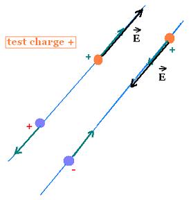 on a positive charged test paticle.