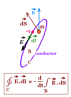 of contour C and surface S, causes an emf ℰ = - dΦB/dt;
