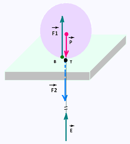 à l'intérieur de boule en présence sont la tension est le poids . Leur somme vectorielle est nulle.