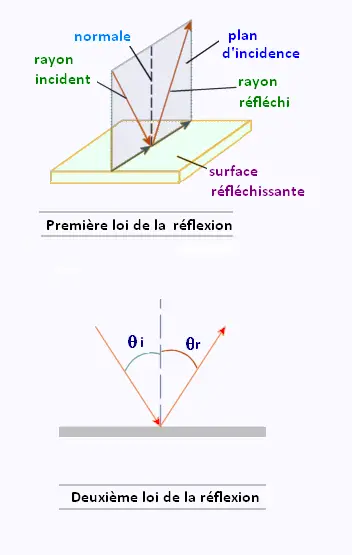 • L'angle d'incidence est égal à l'angle de réflexion