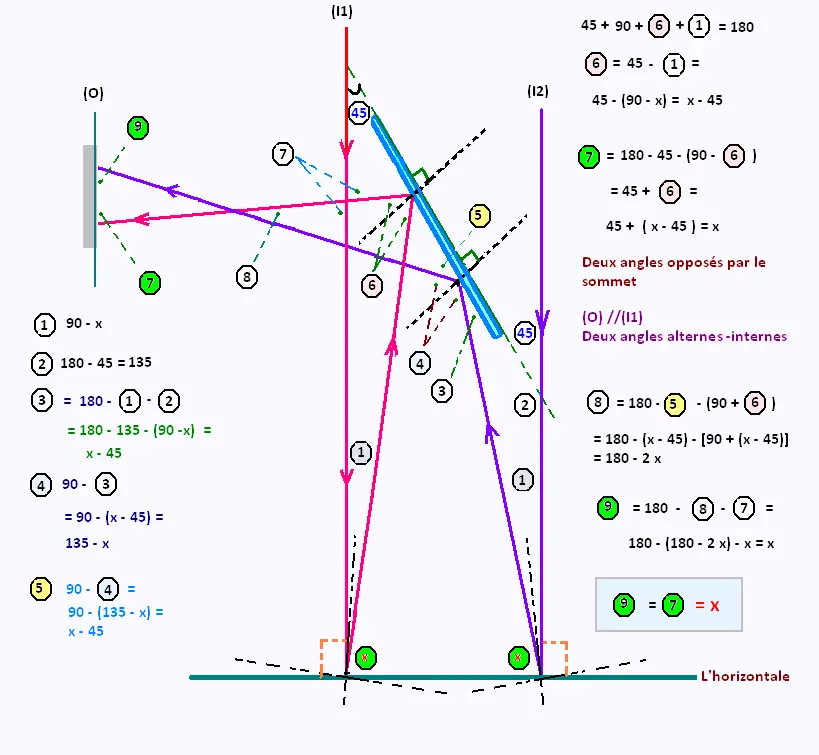 simples de géométrie, que l'angle oculaire est égal à l'angle d'incidence