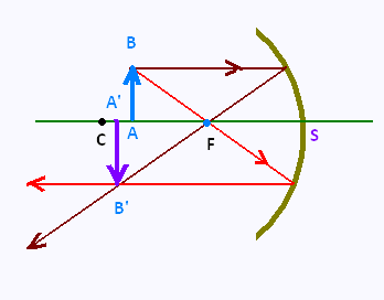 Pour le miroir concave, IC est la bissectrice de l'angle AIA'.