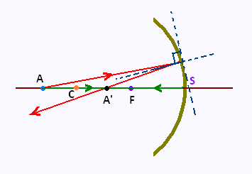 Considérons un rayon incident issu du point A et refléchissant en I. A' est l'image de A.