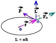 For circular motion, the angular momentum L of the electron is: L = r x p. Its