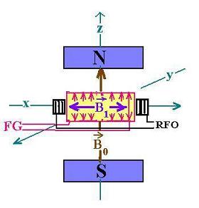 The sample to study is set inside the coil receiving the RF.