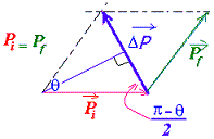 ΔP = ||ΔP|| = ||Pf - Pi|| = 2 mvi sin(θ/2) (1)