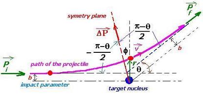 dependence of the scattering θ angle and the impact parameter b which
