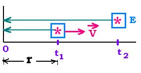 For the observer, this signal reaches the point 0 at the time t1' = t1 + r/c